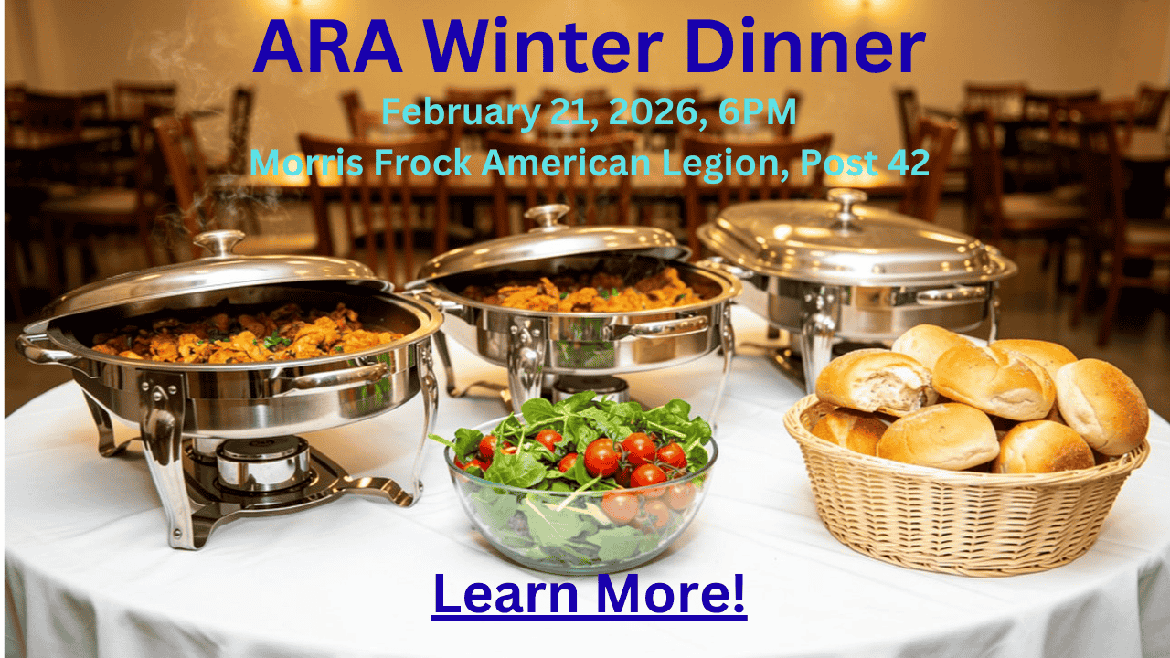 Published Feb 19, 2026--Join us for our annual ARA Winter Dinner this Saturday, February 21, at the Morris Frock American Legion Post 42! Be advised that formal reservations for the buffet are now closed, but if you missed the reservation deadline, you're still....